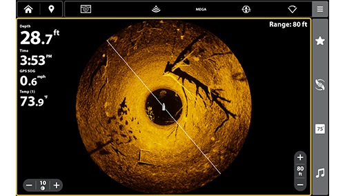 For users who wish to expand their search capability the Mega360+ transducer can be added to the system allowing the user to map 360 degrees out to 40M from their current position.
